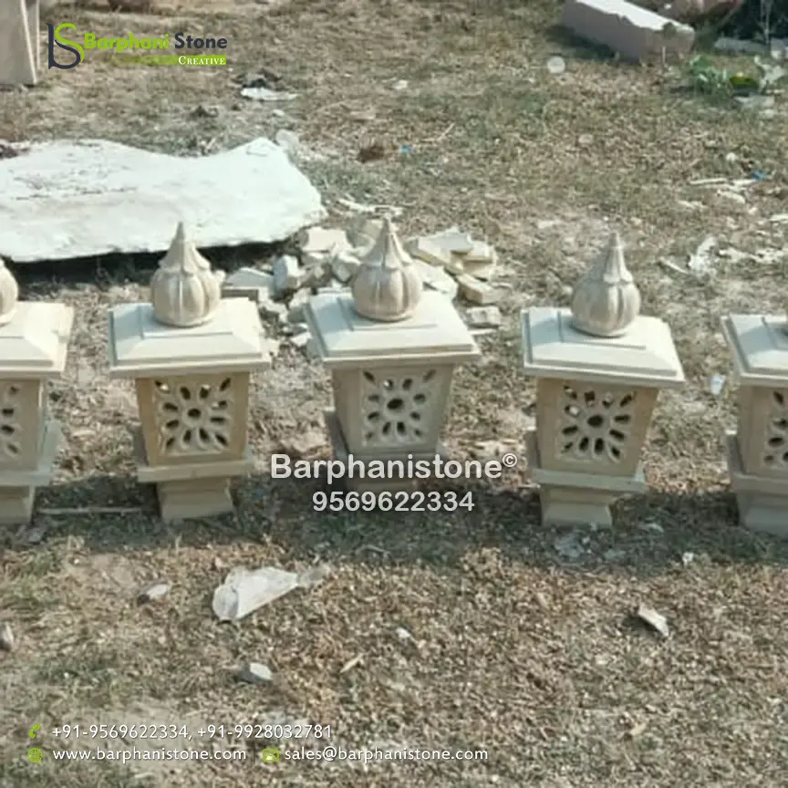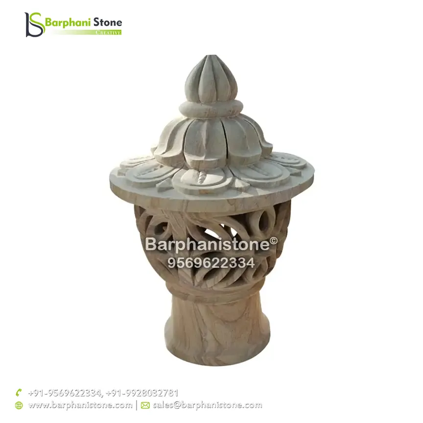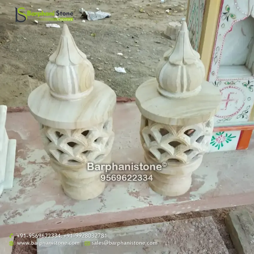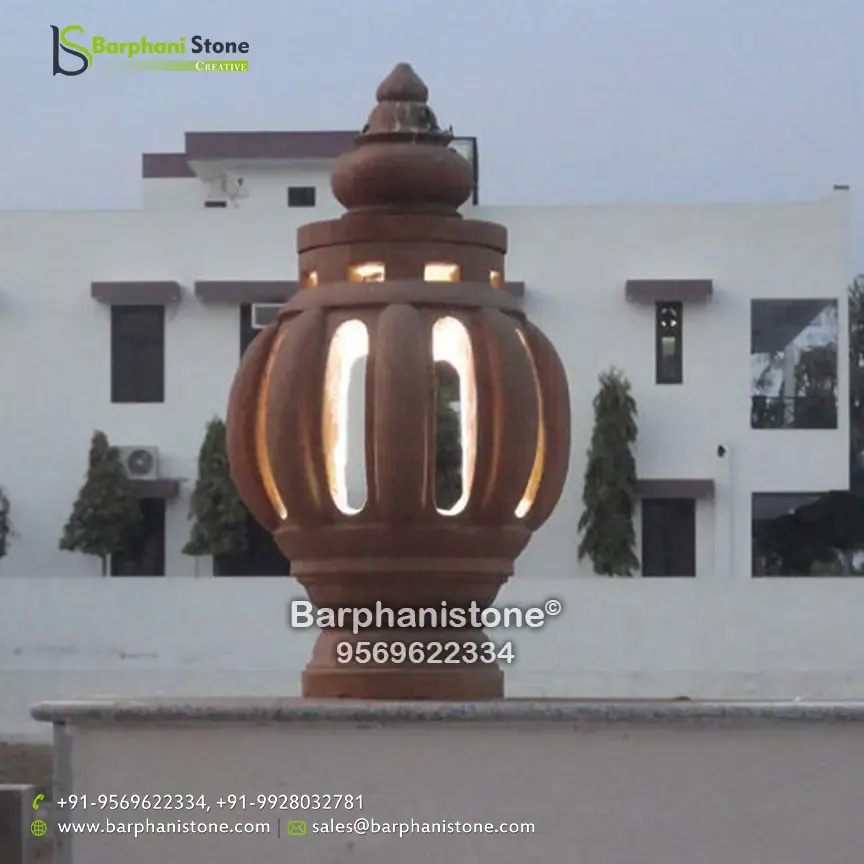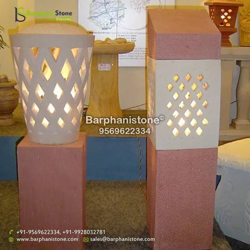 Sandstone Lamps (dholpur light lamp) is used as decorative landscaping stones and come in various hues and sizes and finds usage in homes, artificial ponds, fountains, posh lounges, open-air theaters, aquaria, parks, outhouses, interior, exteriors, and gardens. We have the best collection of stone made traditional lamps. Stone carving is an activity where pieces of rough natural stone are shaped by the controlled removal of stone. Owing to the permanence of the material, stone work has survived which was created during our prehistory.