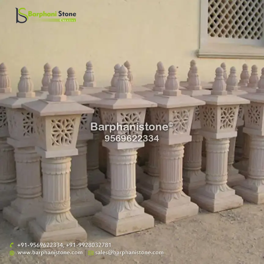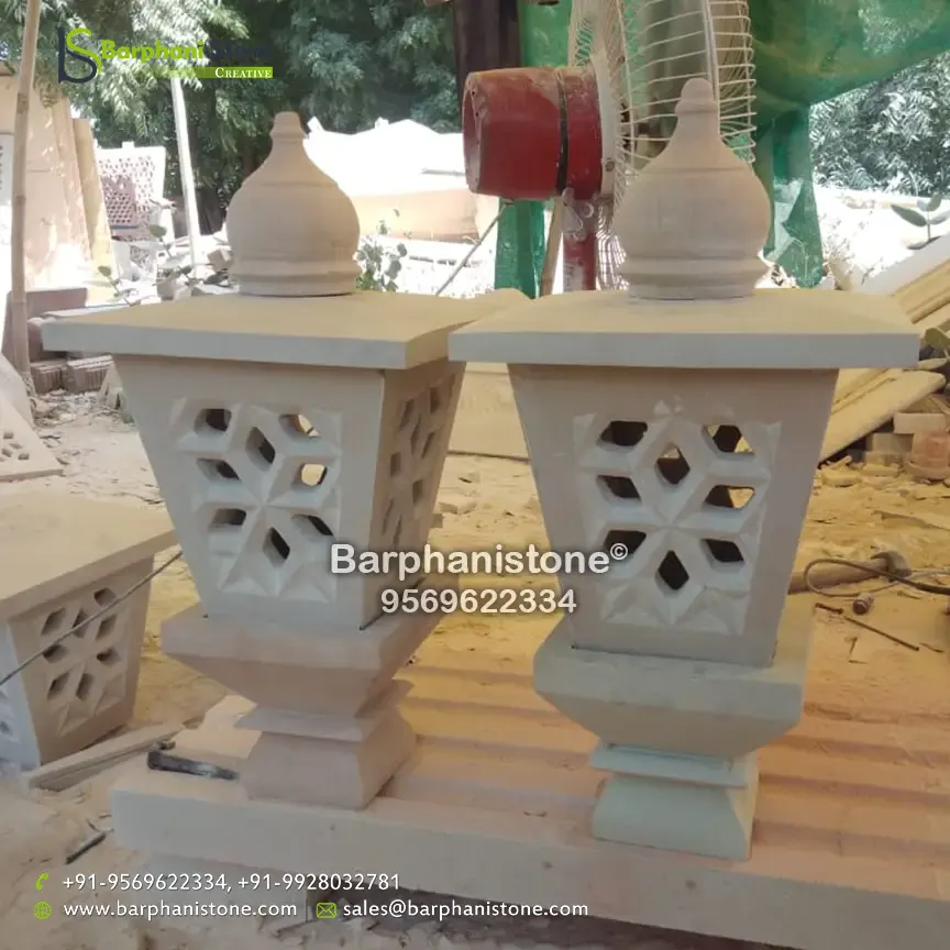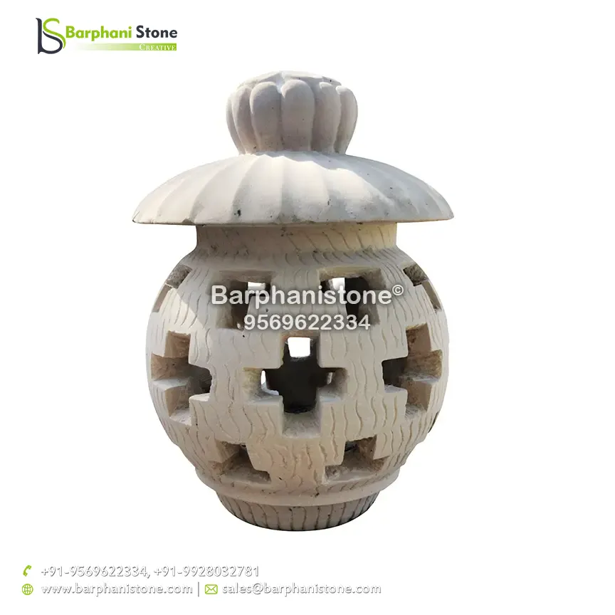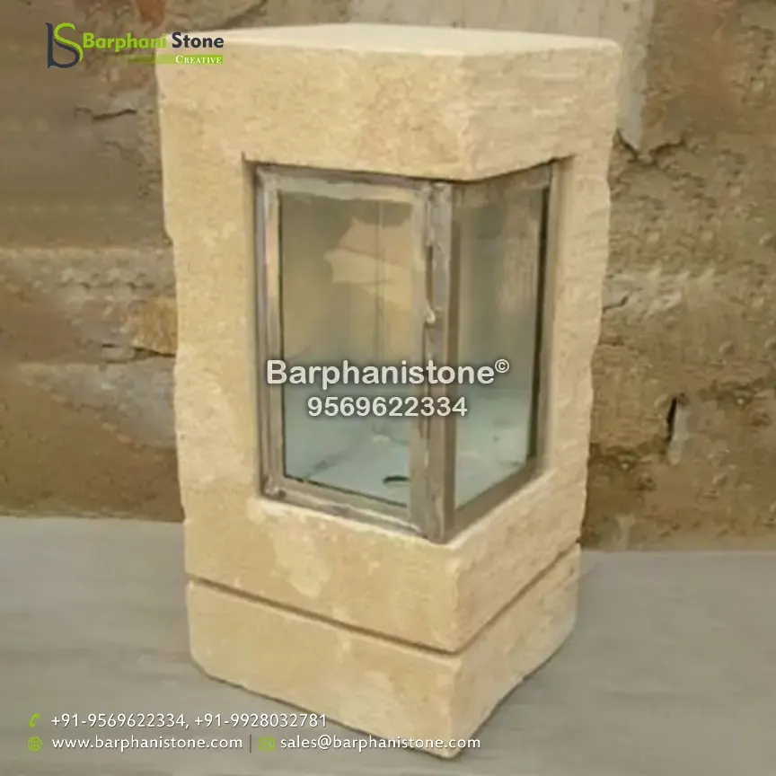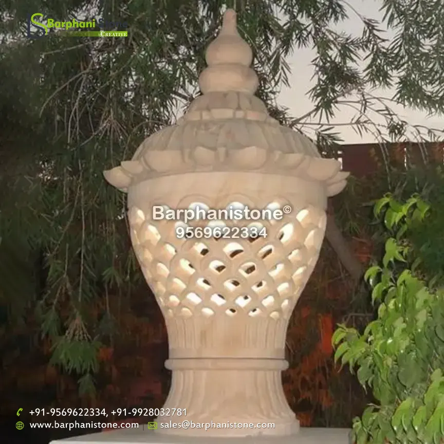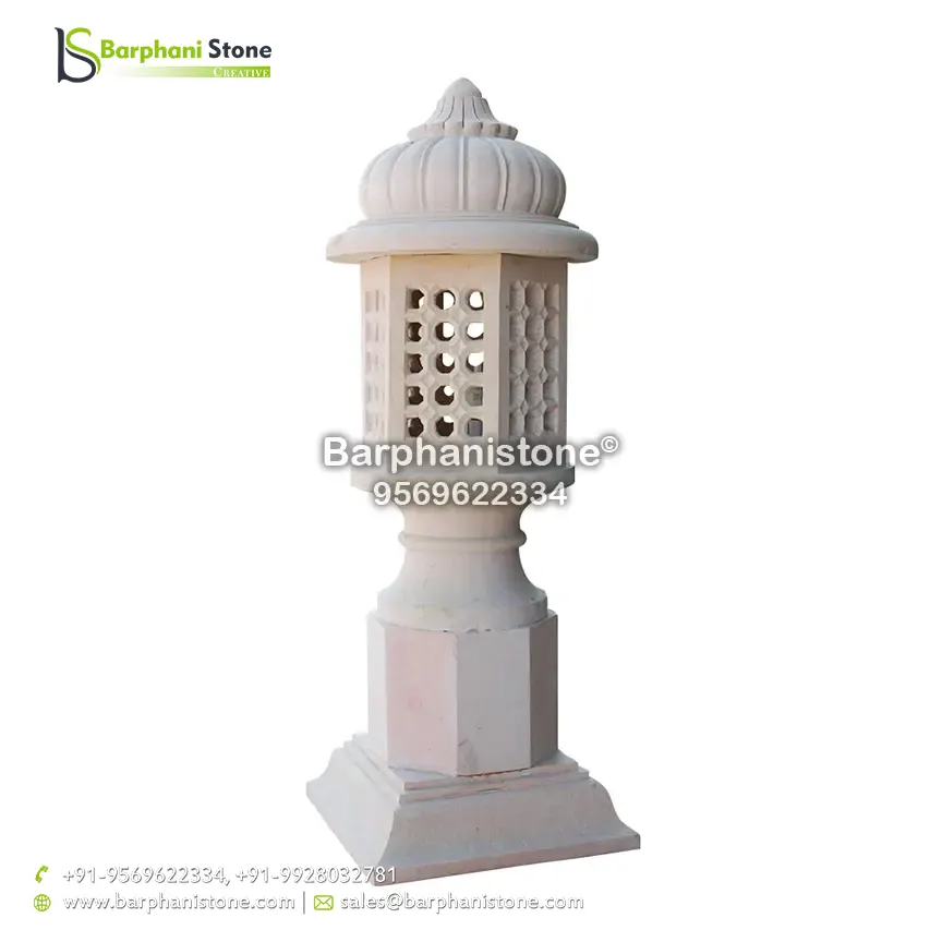 Sandstone Lamps (dholpur light lamp) is used as decorative landscaping stones and come in various hues and sizes and finds usage in homes, artificial ponds, fountains, posh lounges, open-air theaters, aquaria, parks, outhouses, interior, exteriors, and gardens. We have the best collection of stone made traditional lamps. Stone carving is an activity where pieces of rough natural stone are shaped by the controlled removal of stone. Owing to the permanence of the material, stone work has survived which was created during our prehistory.